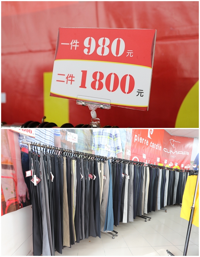 | CUMAR的褲區廠商都幫忙把尺寸全部都分類好了,所以挑起來就非常方便,各種顏色的西裝褲跟休閒褲應有盡有,這些品牌的褲子穿起來同樣都相當舒服,現在這個價錢也很值得入手。 |