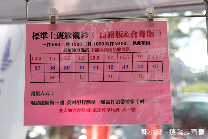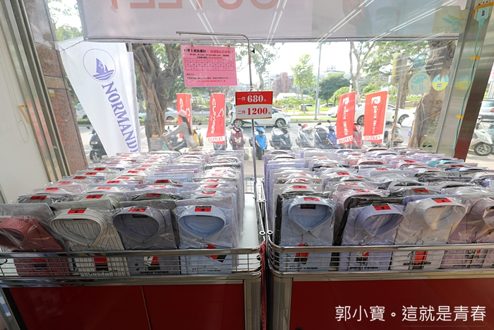 | 這一區花車全部都是上班族一定要來挑選的襯衫區,兩件以上不管幾件通通都是一件600元就可以帶回家,還幫大家標示好了尺寸,挑起來就更方便了,這一區的襯衫大多都是直條紋系列,主要都是上班時穿的襯衫款式為主。 |