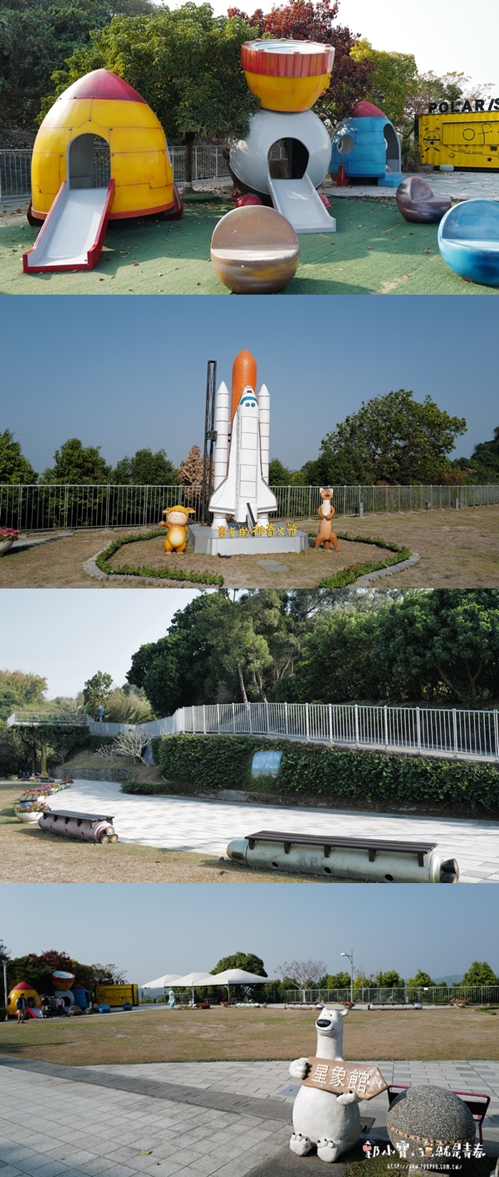 | 南瀛天文館整個園區的設施都非常新穎,且打造的很有主題,戶外小朋友的溜滑梯跟座椅都是以太空為主題的造型。 |