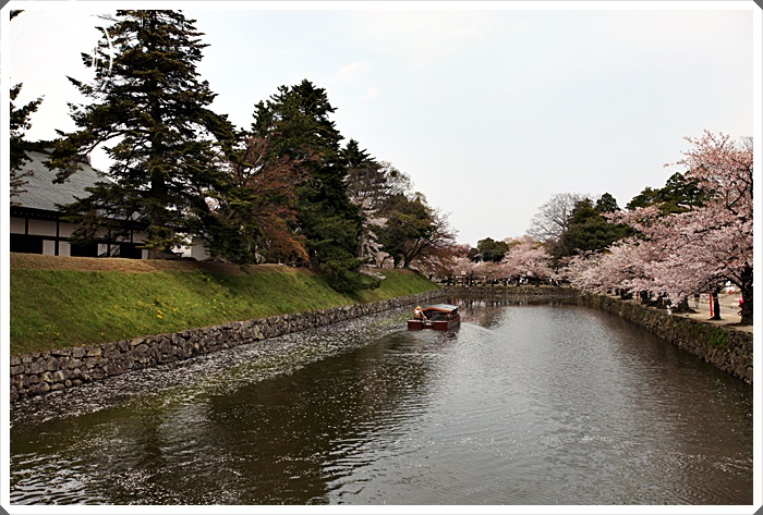 | 走進石墩牆內後裡面還有一個河道,有遊覽船可以搭成,內河道一樣飄滿著櫻花辦,一整個就是美不勝收的美景,走在櫻花樹下的氣氛相當的棒,這邊真的超殺底片的。 |