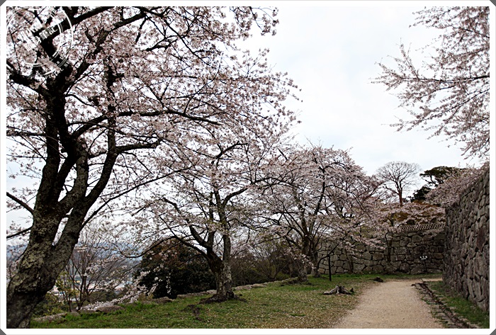 | 持續努力的爬坡中,中途有很多休息的座椅,但是這一段路就沒有什麼櫻花,所以我們幾乎都是一股作氣的爬上城頂。 |