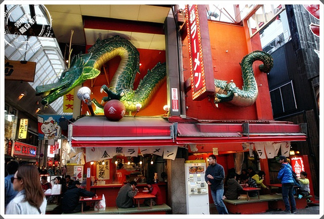 雖然我個人很喜歡一蘭拉麵,但是如果問我說大阪最喜歡的拉麵是哪一家, 我想我就會選金龍拉麵,畢竟現在一蘭拉麵日本各地都有分店,但是金龍拉麵還是只侷限在大阪的樣子, 金龍拉麵的位子不是很難找,因為在大阪難波這付近就有好幾家金龍拉麵。 在道頓堀理面,金龍拉麵就開了兩了家店,對我來說, 走在道頓堀這日本廚房裡面,最能吸引我的香味大概也就是金龍拉麵,真的是香爆了!! 金龍拉麵幾乎都是24小時營業的,曾經有一次來大阪這邊,半夜四點多的時候肚子餓, 跑來道頓掘看看有啥可以吃的,結果就看到金龍拉麵還在營業,可以看到整天都是人潮滿滿的。 金龍拉麵門口前都會有一隻裝飾用的龍,而且每隻龍的臉部表情都不太一樣, 有的甚至我覺得有點可愛,但是我還是很推薦來大阪的朋友一定要品嘗一下的。