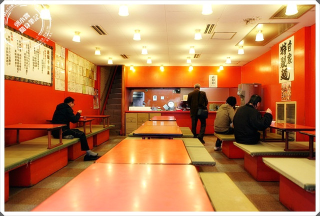 金龍拉麵的室內擺設就是沒擺設,與一般的拉麵店不同,都算是比較傳統的高台和室, 底色紅色的夾板,感覺起來就是一股喜氣洋洋。