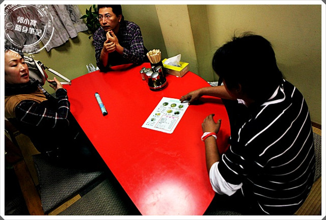 | 這邊的桌子都是半圓形的,還滿妙的,一坐下來後我們就開始研究菜單了,