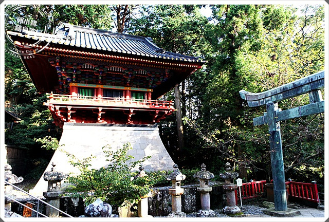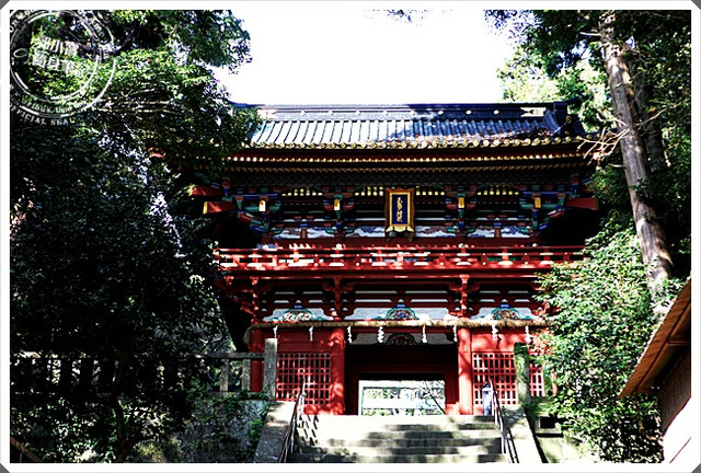 | 從付費口看進去就感覺超級無敵莊嚴的,而且光影照射下的交錯,顯得美麗極了,東照宮大門五彩炫爛。