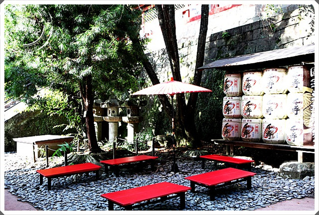 | 到了九能山以後,下了覽車就可以先看到一排的商店街,主要都是販售一些神社的護身符,