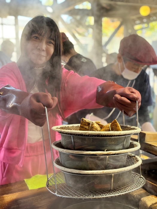 接著就可以拿著食材來到前面的地獄蒸,這邊真的是濃煙密布啊!!!