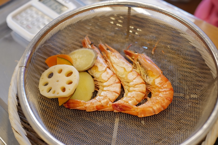 別府真的好好玩,除了有奇景八大地獄可以看以外,還有夜景小巷跟藝文中心等等以外, 說到別府的特色美食,最讓我印象深刻的就是鐵輪工房了,就位於再溫泉地獄的鐵輪,延著步道就可以看到了, 話說這一間有我在別府的另一個回憶,在地獄這邊遇到了台灣人,再前往地獄的巴士中,得知都是台灣人後, 就忘情的聊了起來了,自助旅行的旅途中,他鄉遇舊知真的好開心啊!! 我們還一度聊得大開心忘記放低音量,還被司機大哥罵一一 但是一路上過程都很有趣,可惜隔天他們要前往阿蘇火山,我們則是往福岡博多前進,所以逛完地獄的時候, 我們就一起來到了鐵輪工房。 鐵輪工房的料理有趣是在於,這邊利用溫泉的熱氣去把食材蒸熟,保持食材的原味。