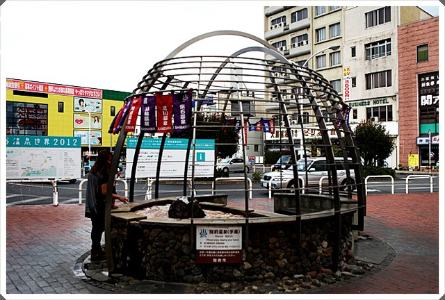 | 一出別府就可以看到手浴池,別府有許多值得觀賞的景觀與遊樂園,但是千萬別忘記這個別府小鎮,