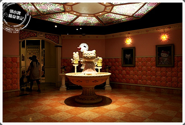 | 一進入後印入眼簾的就是非常唯美的大廳,上面七彩的水晶燈輝印著Hello Kitty的雕像,