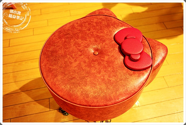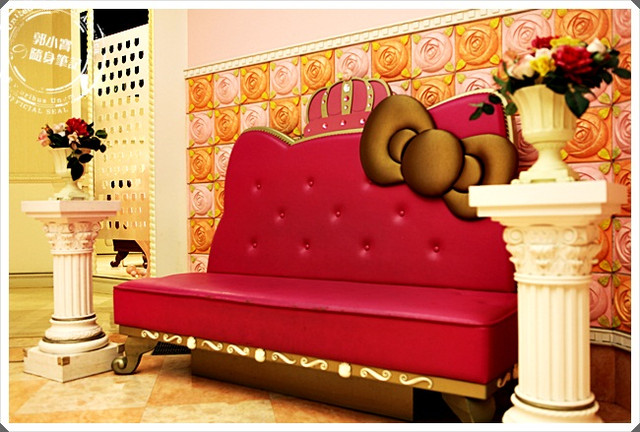 | 大廳裡面有個粉紅色Kitty造型的大沙發,MOMO馬上就跑過去給他坐下去了