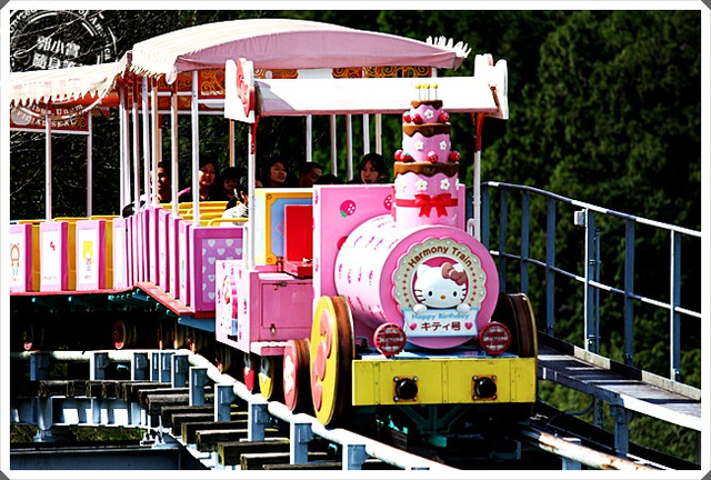 | 裡面有一台Hello Kitty遊園車,畢竟裡面園區也不小,有個園區是在山下的,遊園車負責接運遊客上下山,