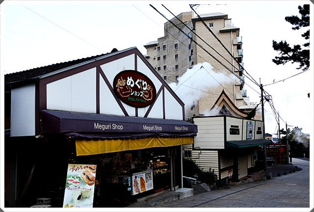 | 沿路的建築也可以讓人感受到濃濃的日本風情,還有各式各樣的商家, 其中滿推薦給大家品嘗一下當地特殊風味,那就是地獄蒸.在別府地獄溫泉區滿多這樣的商店的, 但是我們特別跑到老店去,這家店還滿大的,也有提供泡湯的服務,但是其中一樣一定要推薦大家來體驗看看, 就是動手來蒸出美味的料理。 |