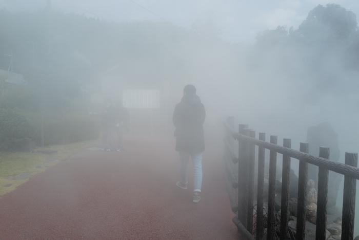 | 沒錯,我們一進入鬼山地獄就是看到這樣霧茫茫的一片,真的是霧茫茫的, 想說這煙也太大了吧,差一點都看不到前面的路了,這是八個地獄裡面熱氣最大的一個地獄溫泉. |