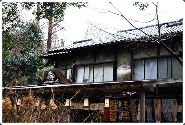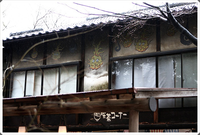 | 這就是鬼太郎茶屋營業後的全景了,非常日式風格,我喜歡日本這樣古樸的房子,當天因為天氣狀況不佳,