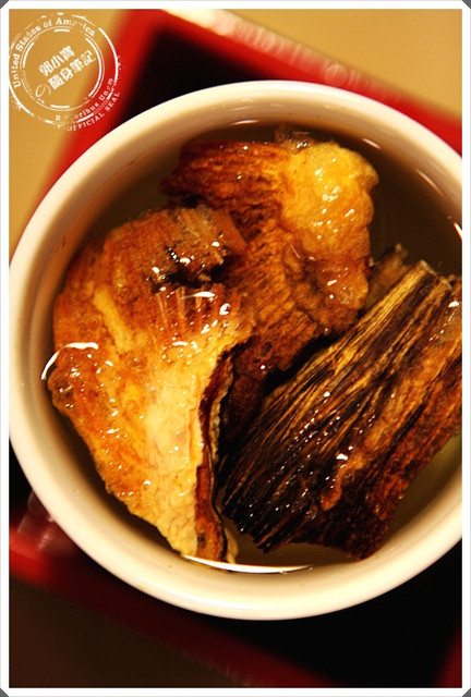 把蓋子打開後,撲面而來的香氣真的是濃郁到一個極點了,清酒本身的香氣就很濃郁了, 加上河豚魚翅,更是散發出特別的味道,連打死都不喝酒的小寶都忍不住喝了一杯, 熱熱的喝好舒服唷,雖然對我來說有點燒口,但是真的好好喝唷, 可惜我同行的人都不喝酒,當下應該把這些清酒打包, 快遞回台灣給可樂超人那幾個酒鬼才對!!!