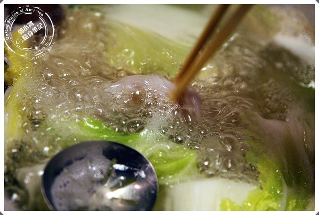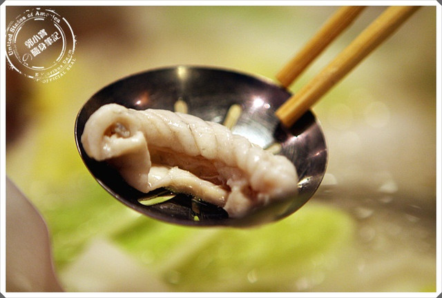 | 接著將魚肉放置鍋內涮完之後,先以不沾醬的部分入口,只有兩個字形容,美味,