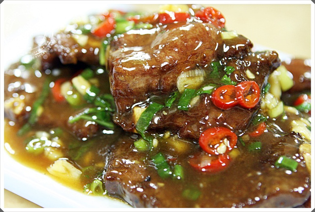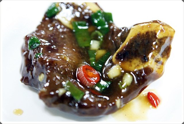 這個就滿特別的了,我還滿喜歡這道菜的,頗像京都排骨的做法,勾芡的恰到好處,不會過於甜膩, 先將蔥辣椒等爆香過的味道有提升到,牛小排軟嫩入口,棒棒!!