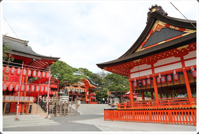 伏見稻荷大社的主建築也非常的多,在京都有名的神社非常的多,整個京都神社高達有1600多間,但是伏見稻荷大社算是位於比較偏遠的地區了,但是依然排在整個京都前十大神社之一,遊客更是絡繹不絕。