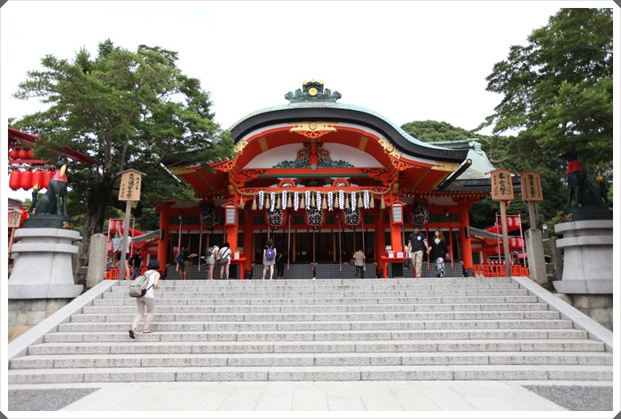 門口大大的獻燈燈籠特別的顯眼,雖然沒有淺草寺的雷門那麼誇張,但是也引起很多人合照了。