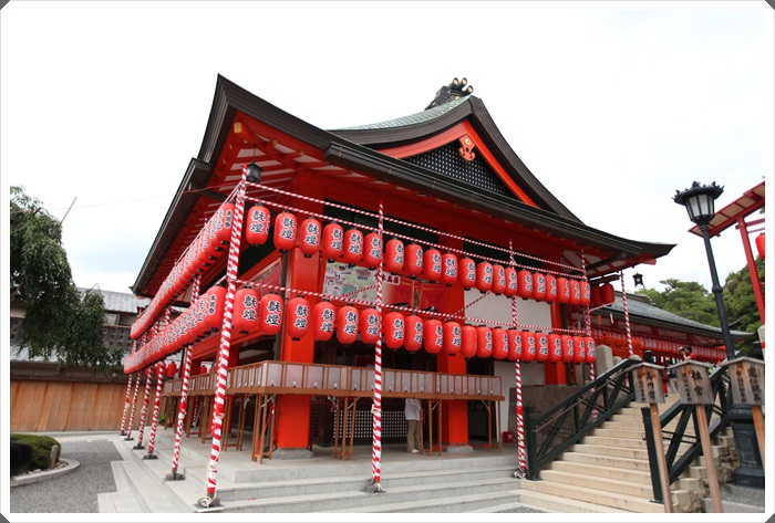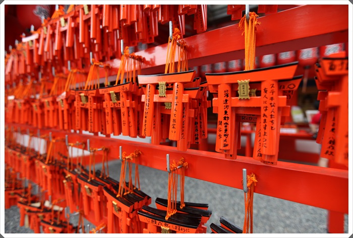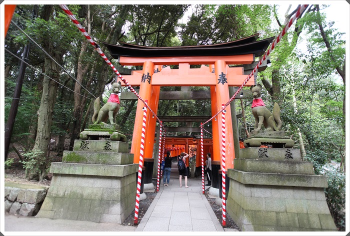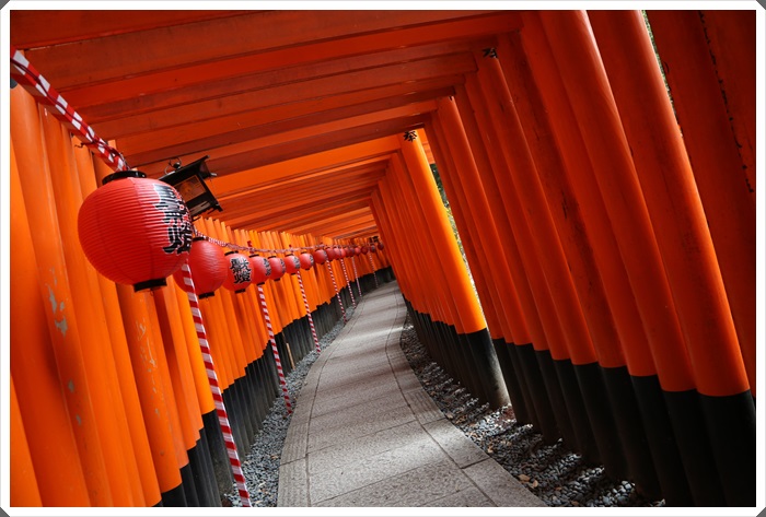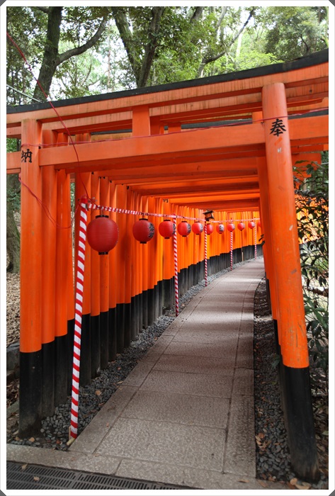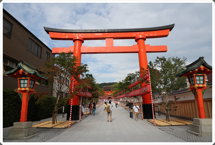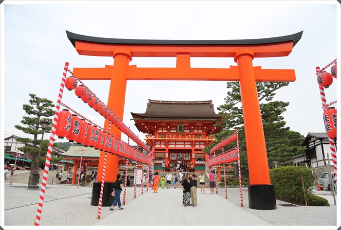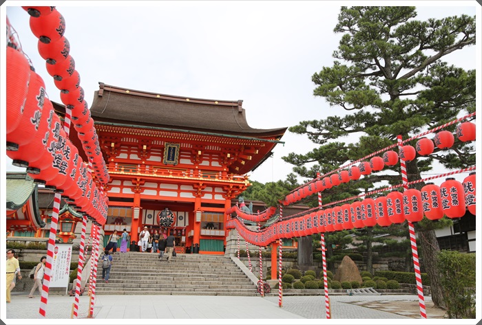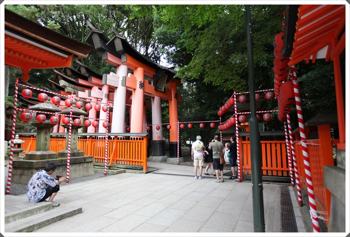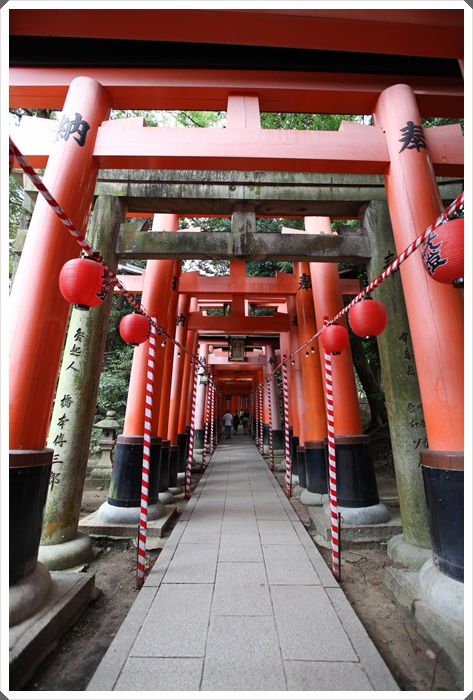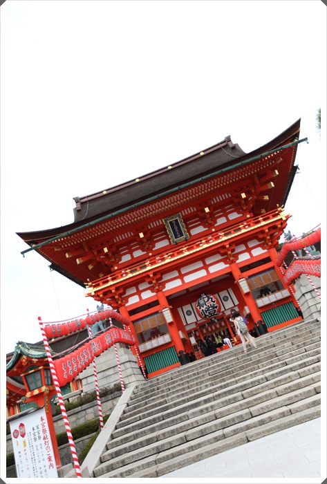 | 伏見稻荷大社的朱紅色大門特別的鮮艷,整理的相當的乾淨美觀,可能也是根本宮祭的到來也有很大的關係。 |