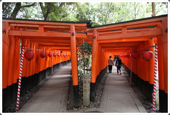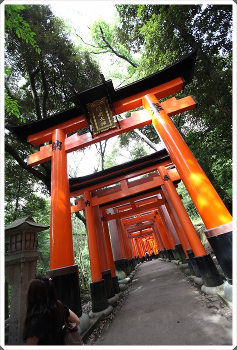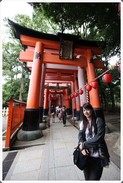 | 基本上這一段千本鳥居是唯一小鳥居的一段,也是人潮最多的一段,幾乎全部的人都會擠在這邊拍照,但是說老實話我也是覺得這邊拍起照來的效果真的最好,加上女孩子會換上和服在這邊拍也很棒,我跟MO貴人也在這邊停留非常久的時間,幾乎殺了很多快門。 |
