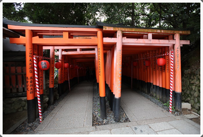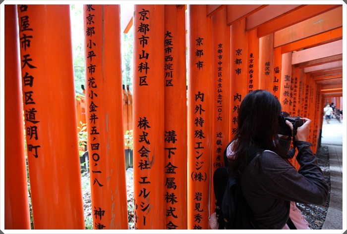 | 這邊就是千本鳥居的真正的起始點了,大部分的人都會選擇在這地方先拍張照片,千本鳥居現在不只上千個了,只就突破了上萬個以上了,而且還用非常的快速的速度累積著。 |