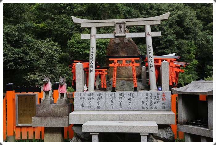 主要還是因為伏見稻荷神社在日本大部分神社裡面都會有,就像是台灣的土地公,不管在什麼地方的大廟小廟,都會在旁邊供奉一尊土地公,而墾丁車城的土地公廟就有點像是土地公的總廟的意思,所以伏見稻荷大社就是這樣的意思了。 |