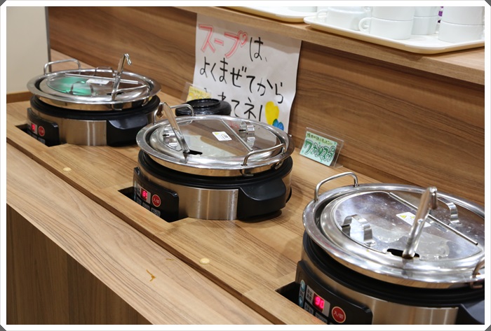 中間的吧檯區就是大家都可以使用的了,三個大鐵鍋只是都是熱湯的部分。
