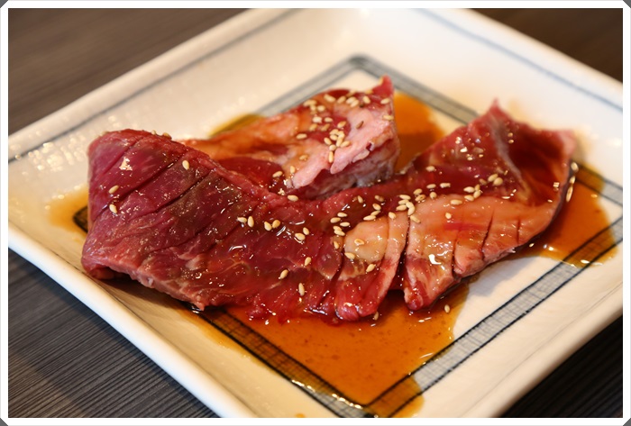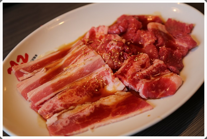 牛肉的種類還滿多的,看起來似乎有沙朗到雪花還有背脊肉通通都有耶,顏色看起來都還不錯,厚度也都切的滿厚的,但是吃久了嘴巴真的會有一點酸倒是真的,大部分的肉都有加醬,其實我個人比較喜歡完全沒加醬的,吃原味或是灑點海鹽我就很滿足了。