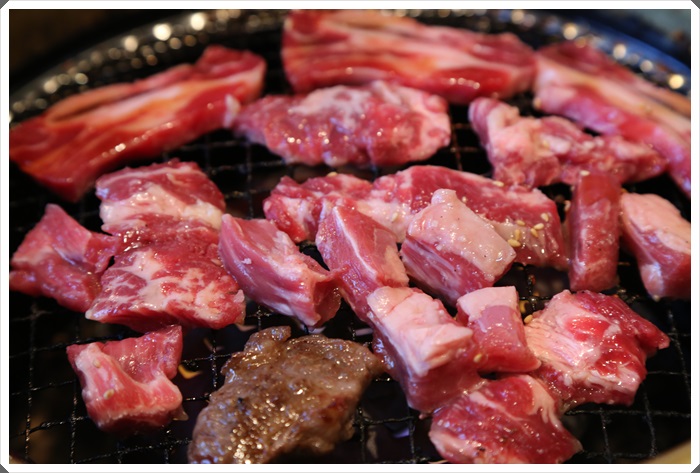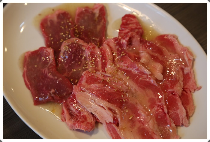 | 其實肉品的選擇性也並不是說到真的非常多,因為很多都是同一種肉品分為兩種醬汁就算是兩種不一樣的肉,所以真正的仔細一算,牛肉品像大概在8種左右,其他的都不是牛肉了,但是當下也沒管那麼多了,全部都先把肉丟上烤爐再說,牛肉的部份整體吃下來個人覺得牛肉的品質普通,跟台灣吃到飽的牛肉沒甚太大的差異性,應該也是使用美牛,而且還是等級不是很高的美牛,因為大部分的肉吃起來都沒有美牛的鮮甜,加上肉盤上來就都有調醬了,所以吃多了就會開始覺得膩口又鹹。 |