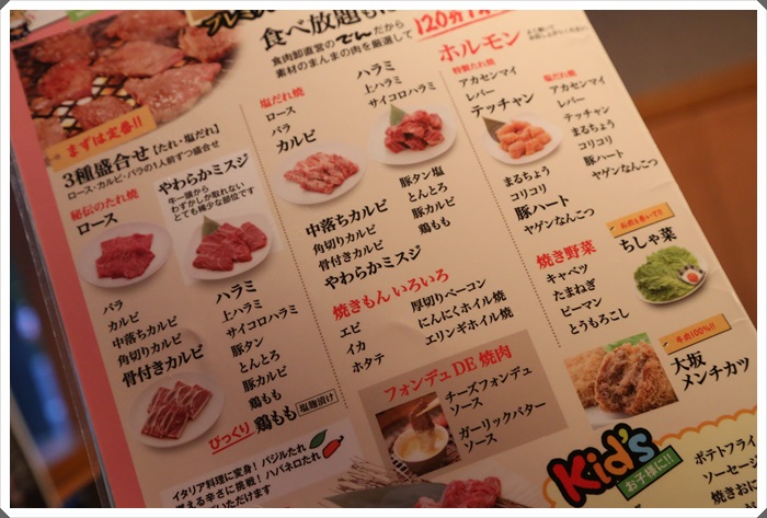 唯一個缺點就是裡面沒有照片,如果像街到我們這樣的外國人,我們就還是比較喜歡看圖點菜,但是我們在日本吃了那麼多燒肉店了,看圖應該也是OK的啦!!