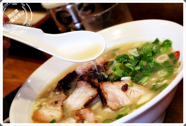 湯色看起來較為淡了一點,但點白末清湯顏色,除了湯頭、麵、叉燒、灑上一點蔥,
