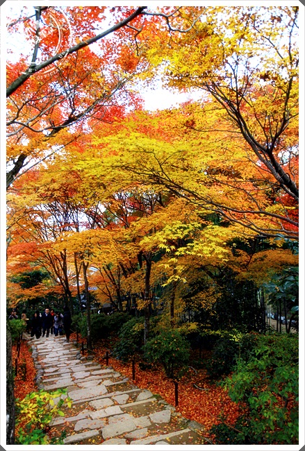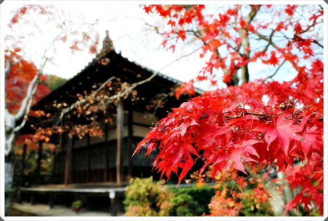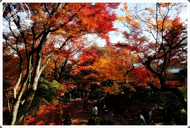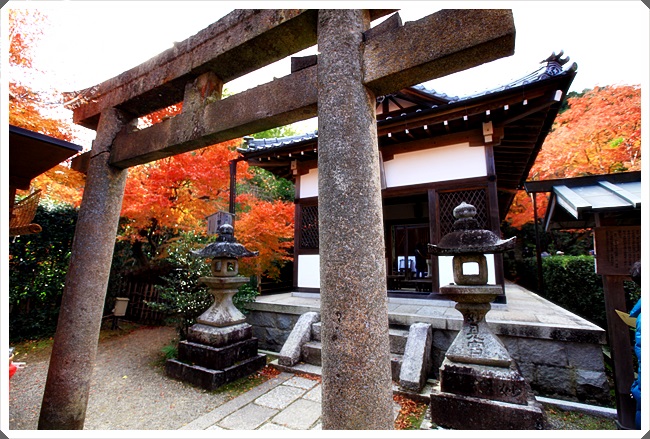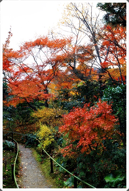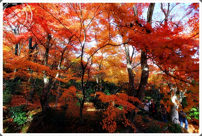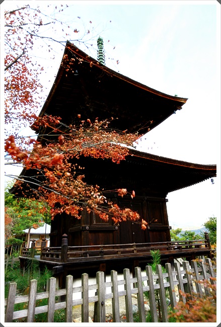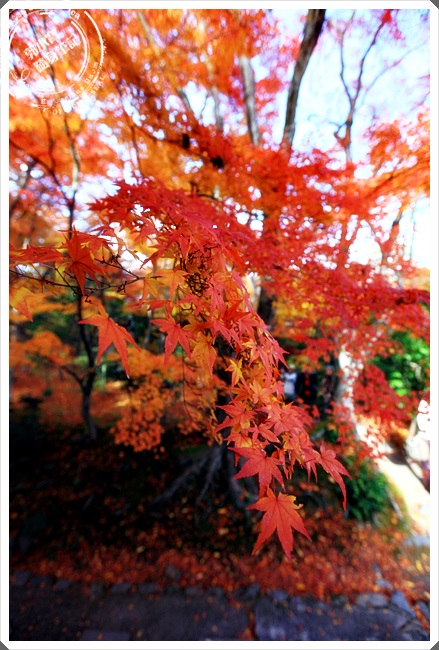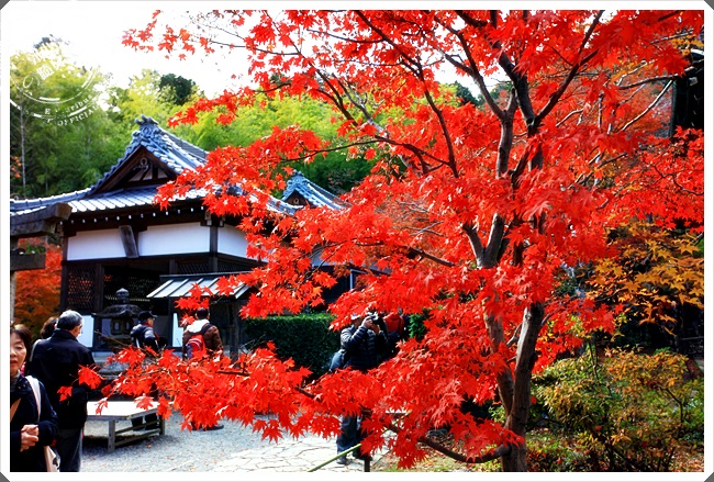| 爬了小樓梯上去後,就到達了常寂光寺,機本上周遭也都是被紅葉佔滿了,