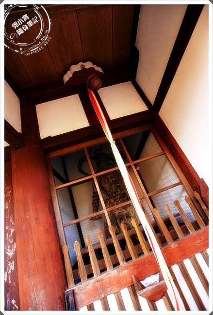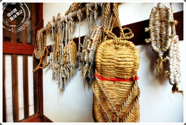 | 中堂是一個很好拍紅葉的地方,一旁掛在大大小小的草鞋。 |