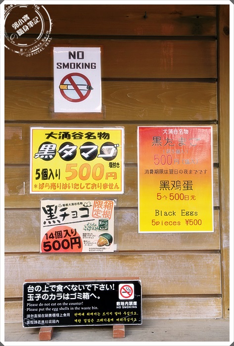 | 原來大湧谷的名產就是黑玉子,也就是溫泉黑雞蛋,凡是來到這邊的遊客都一定要吃上個一顆。 |