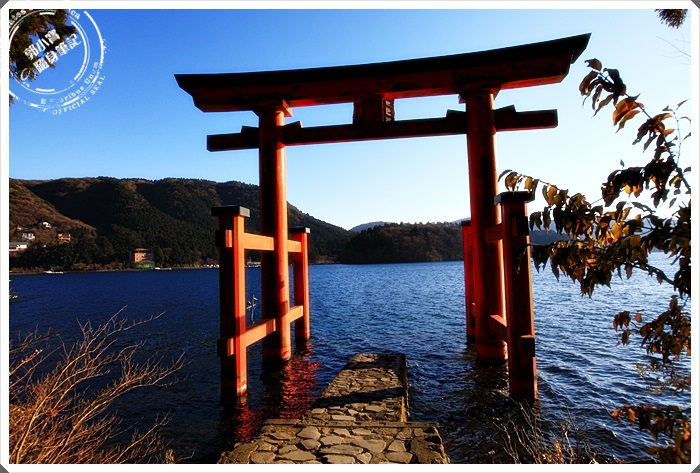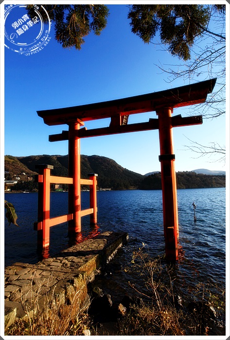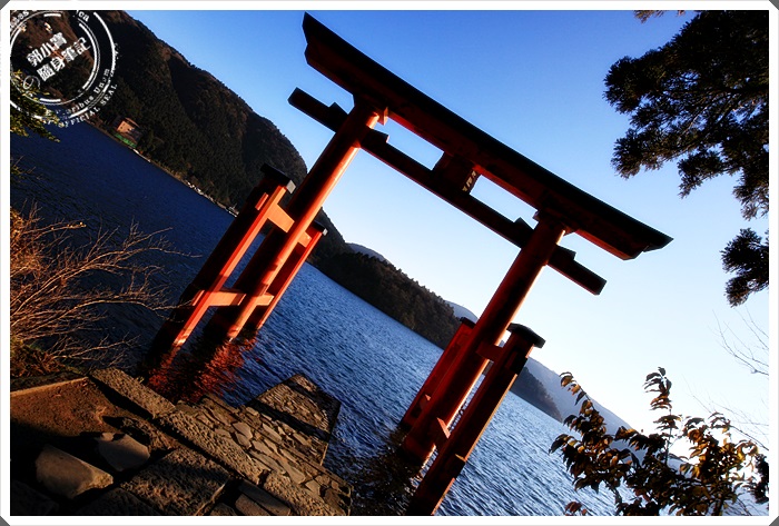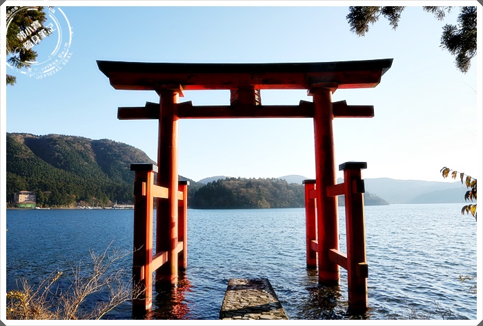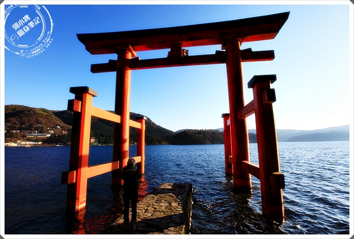 從箱根元町順著道路往下走,大約15分鐘就可以到達湖岸邊的鳥居,