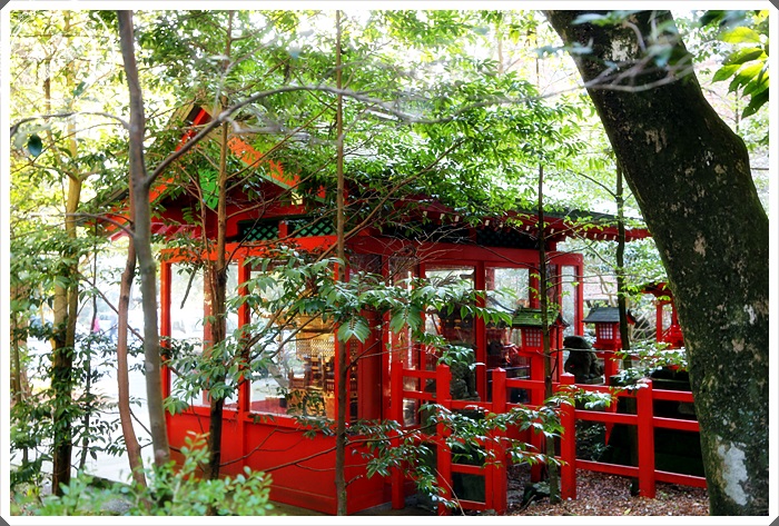 在到達主殿之前,沿路有很多隱身竹林間的小神社,其中還有一個祭典時使用的轎子,