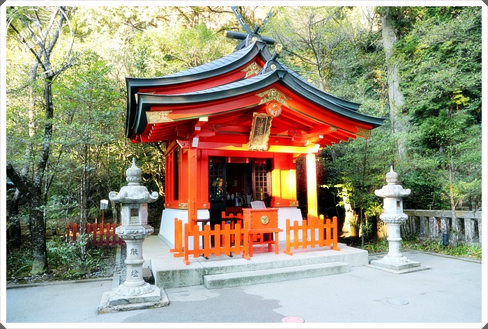 在箱根神社一旁的九頭龍神社新宮讓我眼睛為之一亮,就在主殿的右手邊。