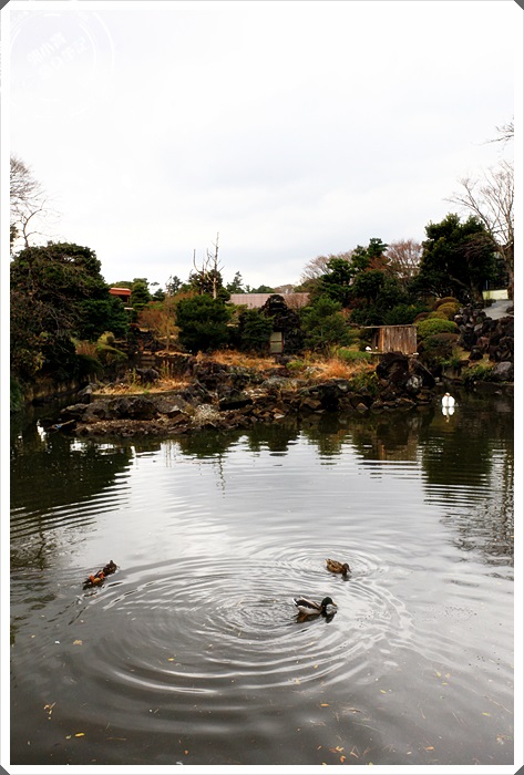 水池上有鴛鴦跟黑天鵝悠游的曬太陽。 |