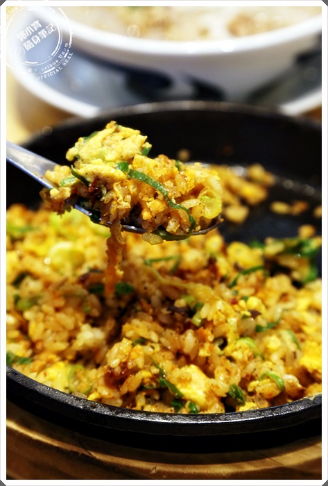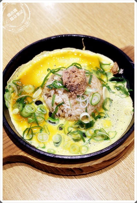 這是一個組合式的套餐,產品還滿豐富的,有鐵板玉子飯跟煎餃還有壹碗小碗的拉麵,套餐先送上來的就是鐵板玉子飯,滾燙的鐵阪先打下蛋液後再放進白飯與碎肉送到客人桌上。