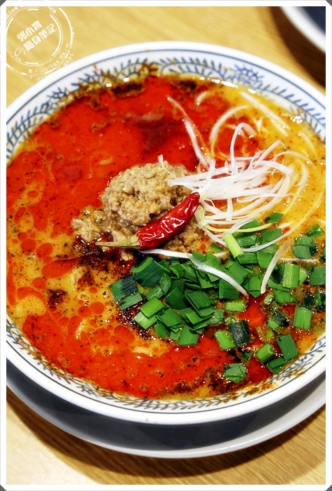 MO貴人點的麻辣擔擔麵,看起來紅咚咚的相當的辣,但是MO貴人吃完後表示還好,沒有很辣就顏色比較嚇人而已,但是麻辣擔擔麵算是丸源拉麵期中的一款招牌拉麵。