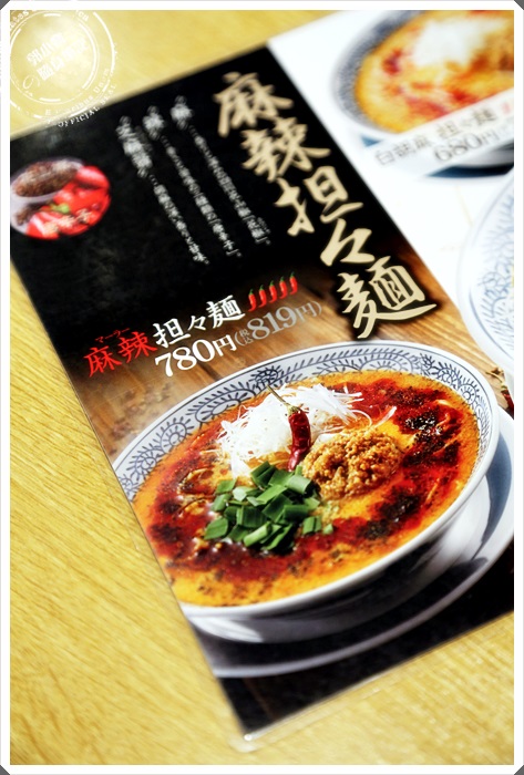 後來看了菜單就明白了,丸源拉麵最主要都是以自己生產的醬油來調製醬油拉麵為主,整個菜單幾乎都是醬油拉麵,只有兩款的鹽拉麵跟味噌拉麵。