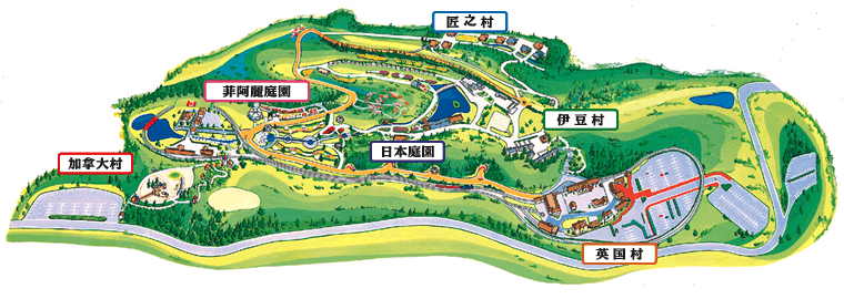 除了有四季的花況以外,還有很多村落,有英國村、日本村等等的異國風情主題區,