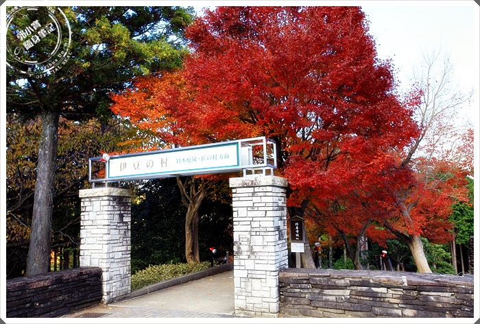 一旁有一個伊豆的村入口,門口就有一顆超美的紅葉樹,火紅的過份!!