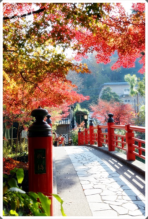 朱紅色的橋身更顯得浪漫及詩情畫意。 |