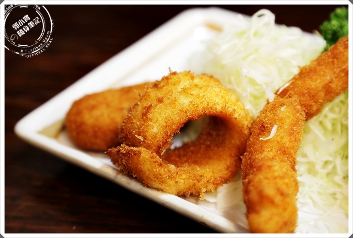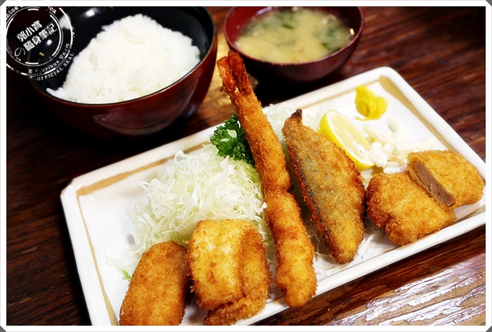 這個應該算是綜合炸物定食,上面有6個品項,有魚肉、蝦子、花枝、豬排等等的炸物,吃起來外皮炸的都相當的酥脆,皮都是薄薄的一層也不會掉落,重點是吃起來一點都不會有油的感覺,一口咬下那喀滋的聲音超級清脆的,每樣都好好吃唷!!