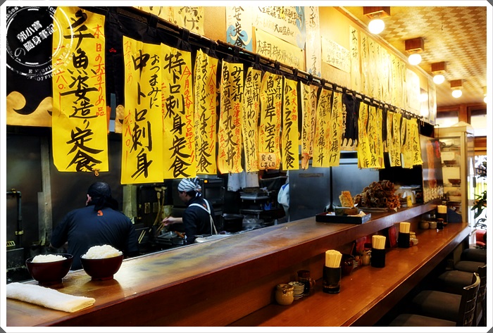 一進門就聽到了熱鬧的吵雜聲,不管是客人聊天的聲音還是工作人員的招呼聲,還有從廚房裡面透出來的叫喊聲,超級熱鬧的,本來她們要我們坐板前,但是我們會不好拍照,所以就跟她表明了想坐四人桌,工作人員就帶我們往店的最裡面走去了。