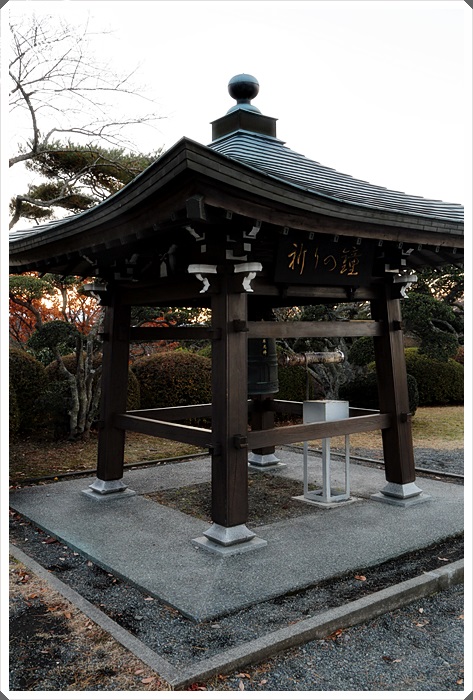 | 在制高點還可以一個涼亭,裡面放的是平和之鐘,上山的人總是會敲一下這平和之鐘,夕陽時分斜照相當的漂亮。 |