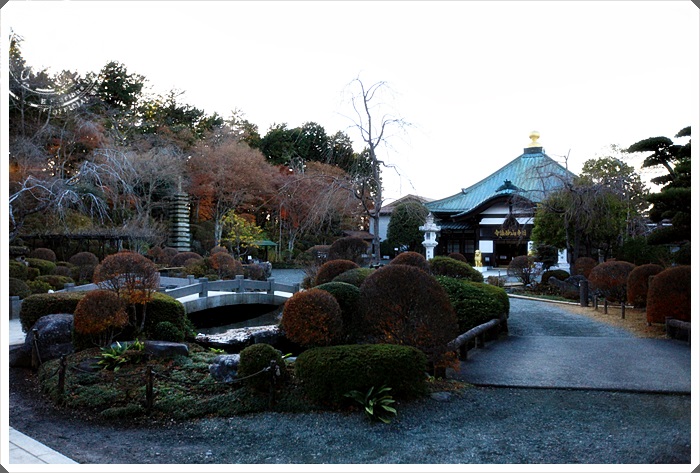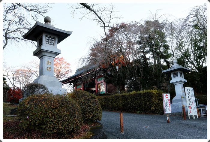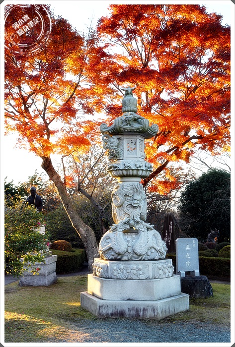 | 一旁的寺廟朱紅大門非常壯觀,門下還有一雙巨大的木屐,感覺相當的特別呢,不知道有沒有甚麼傳說中的故事? |